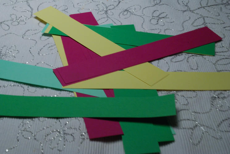 1. klipp pappret i smala remsor (2x15 och 2x20cm kan vara lagom).