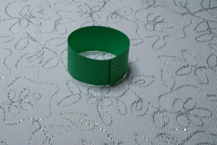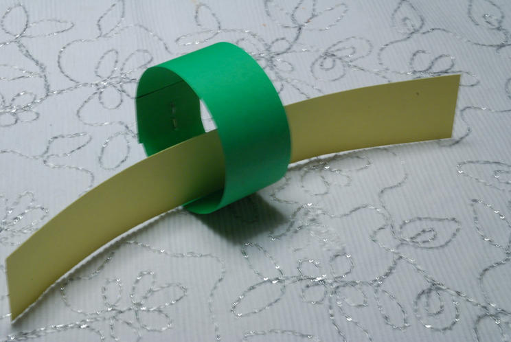 3. trä en ny remsa genom ringen och fäst ihop som en ring