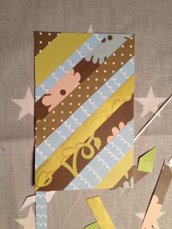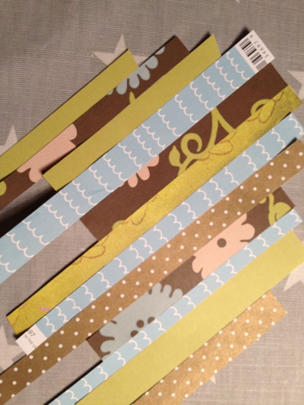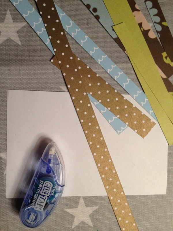 Klipp remsor Klipp eller skär remsor i olika bredder av minst 4 olika mönstrade eller enfärgade papper. Kombinera ihop efter egen fantasi.