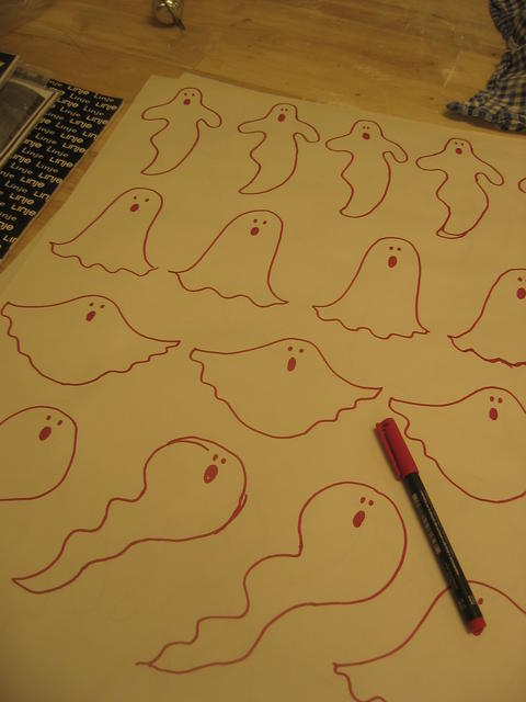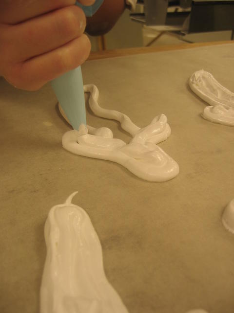 att ha som en mall när du ska spritsa marängen. Lägg pappret på en plåt, på med bakplåtspapper, spritsa och när du är klar drar du försiktigt bort den understa pappret med de ritade figurerna!