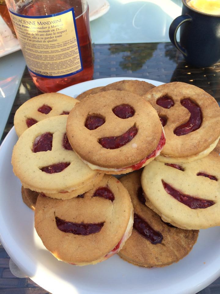 Att baka till kalas kan vara något av en utmaning. Alla gillar olika. Vi brukar slopa tårtan och ha en glasskiosk istället men kakor som syltkakor brukar vara populärt. Om inte annat är syltkakor med ansikten både roliga att baka och att se på, förhoppningsvis tycker de små kalasbarnen om dem med. Skulle man ha ett mindre kalas och ha barn som älskar att baka, kan man ha ett bakkalas; då skulle jag tipsa om denna kaka, som har många namn, vi kallar dem för ansiktskakor.