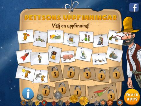 Gubben Pettson är som bekant en klurig gubbe som gillar att experimentera och bygga saker. I appen Pettsons uppfinningar behöver Pettson hjälp av Findus att sätta ihop delarna till uppfinningarna så att ett problem löses.